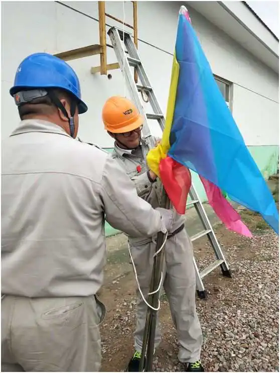 BOT车间为大检修现场扎彩旗。